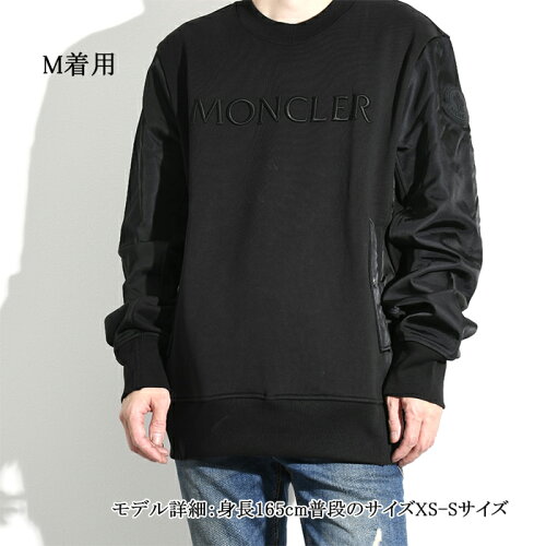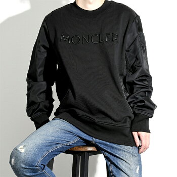 MONCLER モンクレール スウェット トレーナー 刺しゅう ロゴ スウェット 8G00039809KR メンズ BLACK ブラック ポケット ナイロン コットン 黒 長袖 異素材ミックス ギフト プレゼント おすすめ