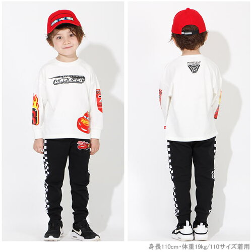 こども 子ども服 長袖 ロングTシャツ トップス 人気キャラクターデザイン カーズ ライトニング・マックィーン おしゃれ 可愛い かわいい かっこいい ドロップショルダー 袖プリント 自動車 カジュアル ★