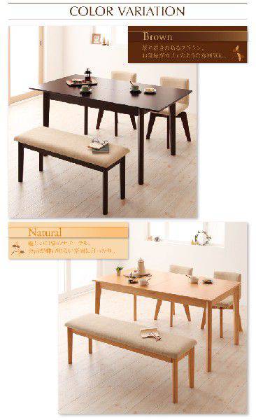 北欧デザインエクステンションダイニング・エクステンションテーブル(W150-200)サイズ:(約)幅150-200×奥行80×高さ74cm材質:天板‐天然木ブナ(ビーチ)突板 脚部‐ラバーウッド 仕上げ‐ポリウレタン塗装耐荷重:約80kg製品重量:約32kg梱包数:1梱包サイズ:約167×88×14cm/梱包重量:約36kg生産国:ベトナム※組立品※脚裏フェルト付・回転チェア(同色2脚組)サイズ:(約)幅37×奥行44×高さ65(座面高45)cm材質:張り地‐アクリル60%、ポリエステル40% フレーム‐ラバーウッド、積層合板 クッション材‐ウレタンフォーム製品重量:約7kg(1脚当たり)梱包数:1(※2脚1梱包)/梱包サイズ:約60×47×95cm/梱包重量:約16kg生産国:ベトナム※完成品・ベンチサイズ:(約)幅130×奥行35×高さ45cm材質:張り地‐アクリル60%、ポリエステル40% フレーム‐ラバーウッド クッション材‐ウレタンフォーム製品重量:約11kg(1脚当たり)梱包数:1/梱包サイズ:約138×43×15cm/梱包重量:約12kg生産国:ベトナム※組立品・4点セットセット内容:エクステンションテーブル(W150-200)×1、回転チェア×2、ベンチ×1・5点セットセット内容:エクステンションテーブル(W150-200)×1、回転チェア×4・7点セットセット内容:エクステンションテーブル(W150-200)×1、回転チェア×6※実際の商品の色にできるだけ近づけるよう撮影を行っておりますが、 商品色はご使用のモニターによって実際の明るさや色と多少異なって見える場合がございます。