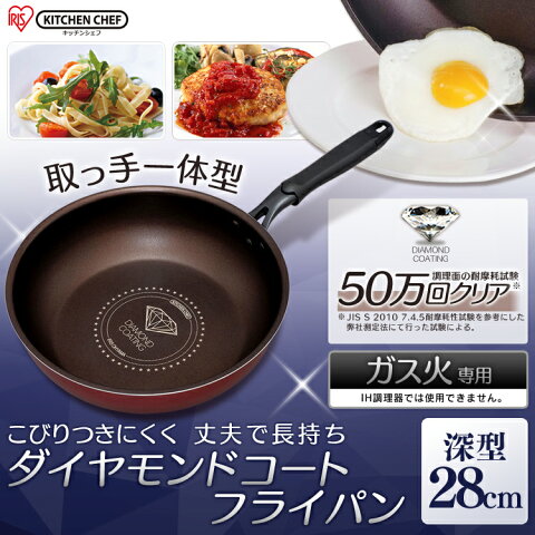 ◆少ない油でヘルシー調理! ダイヤモンドコートパンなら、 食材がフライパンにこびりつきにくく 少ない油でヘルシーに調理ができます! ◆丈夫で長持ち 調理面の耐摩耗性試験50万回クリア。