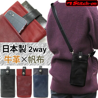 日本製 ショルダーポーチ 本革 帆布 stitch-on 豊岡 ブランド 2WAY ウエストポーチ 斜めがけ スマホポーチ メンズ レディース 人気 牛革 ステッチオン ウォレット ポーチ 52029(ki2a092)