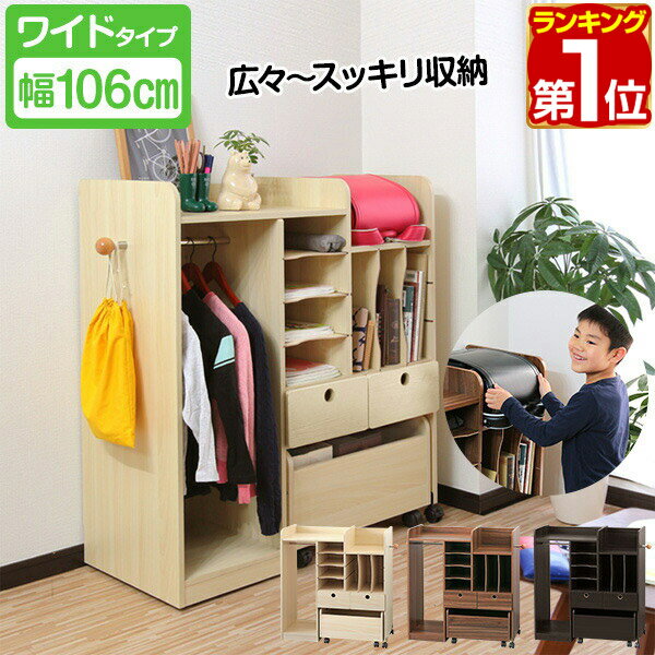 ハンガーラック付ランドセルラック ワイドタイプ【3カラー】 商 品 詳 細 カラー ・ナチュラル ・ウォールナット ・ダークブラウン サイズ (約)幅106cm×奥行42cm×高さ98cm 材質 メラミン樹脂化粧中密度繊維板 重量 (約)20kg 耐荷重 (約)30kg ※ハンガーラック付ランドセルラック全体の耐荷重となります。