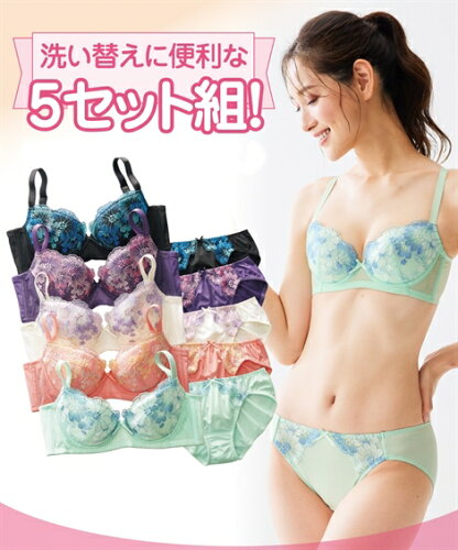 原産国 中国製 メーカー品番 ZZY4322B0943 コメント お買い得で洗い替えにも便利!華やかなビッグフラワー刺しゅうの脇高ブラ&ショーツ5セット組。