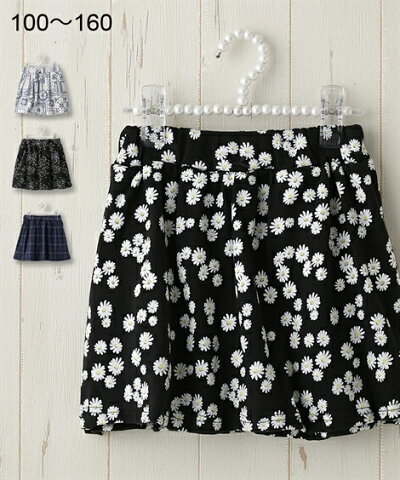 スカッツ キッズ 女の子 総柄 パンツイン スカート 子供服 ジュニア服 オフホワイト ペイズリー柄 /チャコールグレー 星柄 /ネイビー チェック柄 /黒 デイジー柄 身長100/110/120/130cm ニッセン nissen