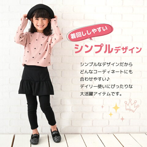 送料無料 キッズスカート付きレギンス スカッツ 10分丈 子供服 子供 キッズ ジュニア 女の子 スカート付きレギンス レギンス スカート フリル シンプル 無地 ボトムス 子ども こども 90 100 110 120 130 140