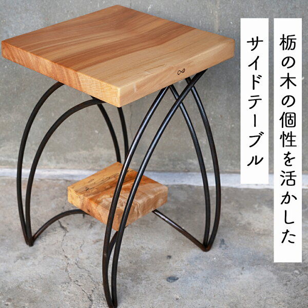 商品説明サイズ 高さ:58.5cm 天板:W37.8cm × D37.8cm 厚み4cm素材・塗装天板:栃(オイル仕上げ) 脚:鉄(ウレタン塗装) 商品説明 自然との繋がりを感じられる一点もののサイドテーブルです。