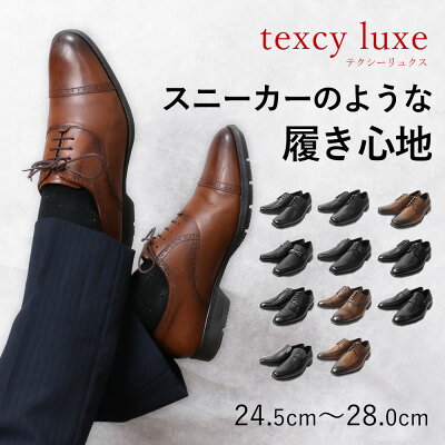 ビジネスシューズ 革靴 メンズ 本革 アシックス商事 texcy luxe テクシーリュクス 紐タイプ 2E相当 革靴 ビジネスシューズ men's 黒 24.5-27.0 28.0 29.0 TU-7002