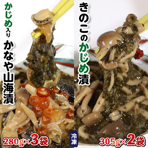 【ふるさと納税】 かじめ かなや山海漬280g×3袋 きのこのかじめ漬305g×2袋 セット 自家製 カジメ 海藻 ねばねば 山海漬 海鮮丼 のっけ飯 いくら ほたて つぶ貝 貝 きのこ ごはんのお供 おつまみ 送料無料 千葉県 富津市 金谷 海辺の湯