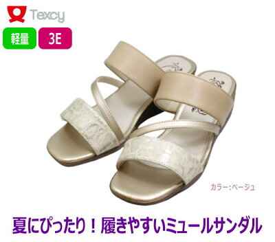 texcy テクシー TL18450 3E カジュアルサンダル ミュールサンダル 軽量 幅広【サンダル】【靴】 サマー 夏 サンダル アシックス商事 テクシーレディース コンフォート ウエッジソール